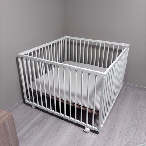Selger denne lekegrinden da vi ikke lenger trenger den. Den er brukt og har synlige bruksmerker på kantene og spilene, men fungerer helt fint, er stødig og har mye bruk igjen. Bunnen kan monteres i to forskjellige høyder. 104x104 cm og 76 cm høy. Lekematten som ligger oppi på bildene medfølger ikke. Demonteres før salg. Må hentes.