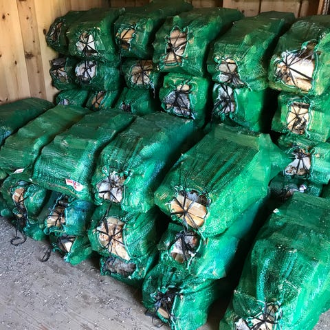 Selger 60-liters sekker med ekstra tørr bjørkeved.