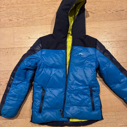 To lommer med glidelås, lomme til skikort på venstre arm. Avtagbar hette. Snøstopper i midjen.
