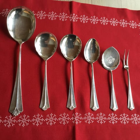 Rådhus med vifte, sølv suppeskjeer.