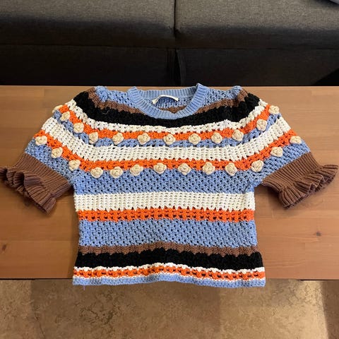 Devold genser for dame i størrelse XS. Genseren er rød med mønster og har høy hals.