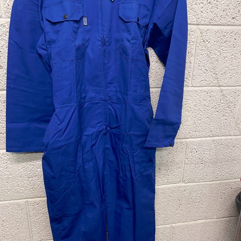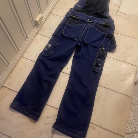 Ubrukt vintage arbeidstøy i blå denim. Snøring i livet. Solide og fine knapper. Produsert av Jonas Øglænd. Tilsvarer ca størrelse M. Se mål i bilde 3. Passer til person som er ca 180 cm høy. Ingen feil eller skader. Orginal-lappen sitter på.