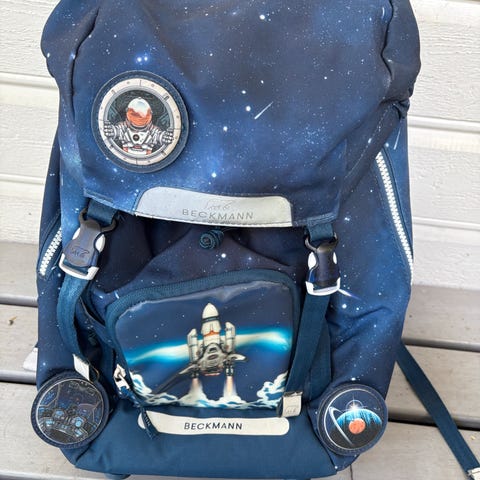 Selger to sekker fra Beckmann. Skolesekken er brukt i 2,5 år, men har masse bruk igjen. Den lille sekken er lite brukt og fremstår som
