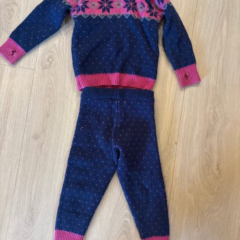 Pent brukt ullsett i mørk blå fra cubus. Strl 92. Vasket kun med vaskemiddel for ull. Røyke- og dyrefritt hjem.