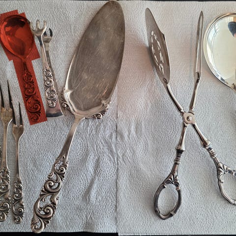 Selger pent lite brukt Arvesølv, Serverings skjer 23 cm kr 1500,-, Krem skjer 18,5 cm kr 1300,-