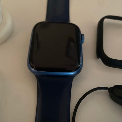 Apple Watch smartklokke med svart reim. Passer til hverdagsbruk og trening.