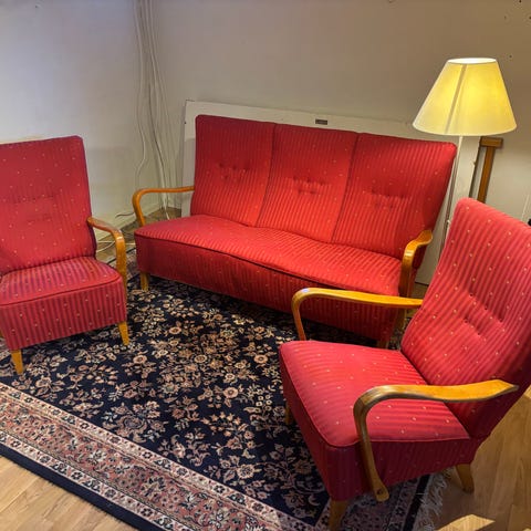 To fine og myke retro sofastoler selges samlet (totalt bredde 140cm), kan brukes som sofa eller separate.