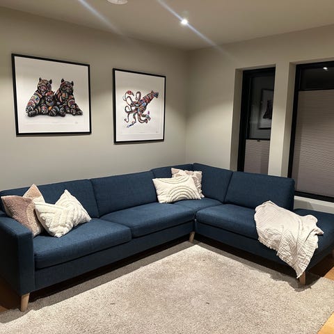 Selger en stilren og svært komfortabel Vilmers modulsofa i nøytral beige/grå tone. Sofaen har et moderne uttrykk med rene linjer og passer perfekt inn i både skandinaviske og moderne hjem. God sittekomfort med solid konstruksjon og slitesterkt stoff av høy kvalitet.