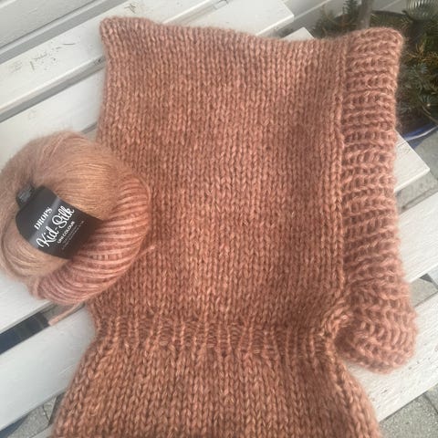 Jeg strikker mye på bestilling, og denne er til overs. Har aldri vært brukt. Nystrikket. Fra røykfritt og dyrefritt hjem.