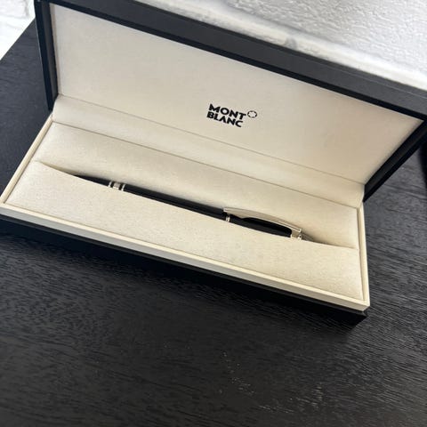 Cross Slim Black Pen kulepenn i sølvfarget metall. Pennen har slankt design med klips på hetten og leveres i original Cross-eske. Egnet til daglig skriving på kontor, skole eller hjemme. Sort blekk ifølge merkingen på esken (Slim Black Pen). Pennen er ny (ubrukt) i original eske.