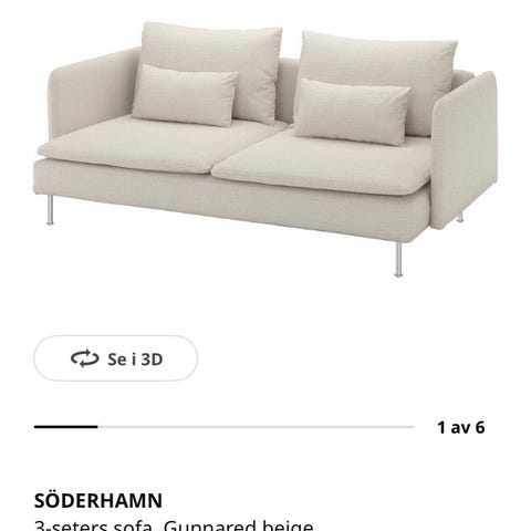 Selger min brukte sofa av merket søderhamn til 2500 grunnet flytting. Det er to moduler + puff som festes sammen. Kan ta fra alle delene og sofaben til forflytting. Trekk kan også taes av og vaskes😊