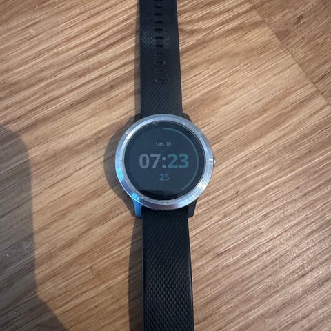 Garmin Vivoactive 3 smartklokke i hvit farge med rund berøringsskjerm og silikonreim. Klokken har GPS og aktivitetsmåling til trening og hverdagsbruk, med funksjoner som skrittelling, pulsmåling og registrering av ulike treningsaktiviteter. Leveres med ladekabel, som vist på bildene. Mangler reimholderen. Alt fungerer som det skal og skjermen er uten riper.