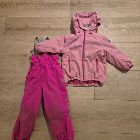 Rosa bukse fra h&m Litt liten str 122. (Brukt en gang, nesten som ny. strikkene i bena er aldri brukt, så de er fine og hele) Vanntett og vindtett, regulerbare seler i strikk og reflekser på bena.