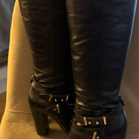 Syrox vinterstøvler i størrelse 38 tilslag. Støvlene er i brun farge med grov såle og glidelås på siden. De har høy skaftlengde av 33 cm og mykt, lyst fôr på innsiden for ekstra varme. Egnet som vinterfottøy i kaldt vær.