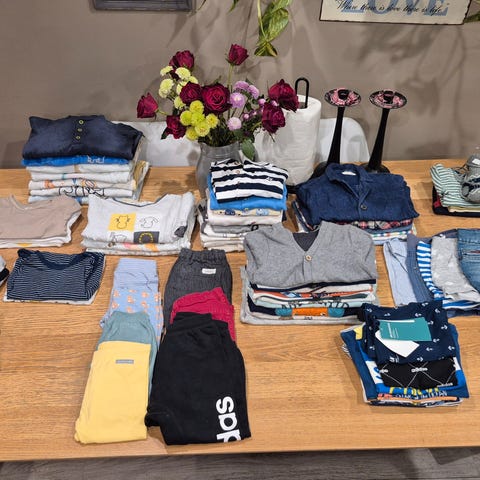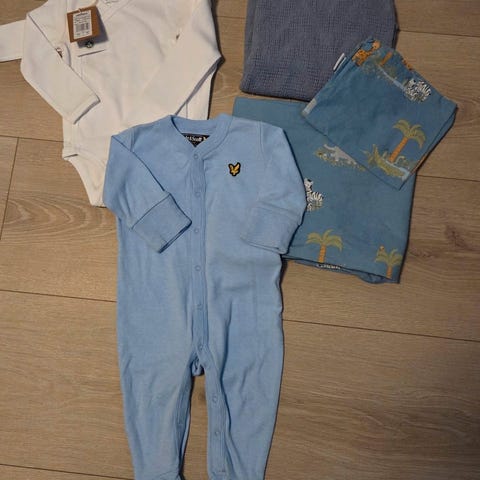 Hele pakken med 3 bukser en college genser 8 bodyer 3 i ull. 1 helt ny. Et syk regntøy i 80. Og regn votter 1 str. Foret