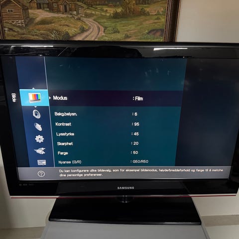 LG 42PQ6500 TV med 42 tommer skjerm i svart utførelse. Modellen er en plasma-TV, egnet for bruk i stue, soverom eller andre oppholdsrom. TV-en har innebygde tilkoblingsmuligheter som vanligvis finnes på denne typen modell, som for eksempel HDMI og andre standardinnganger for tilkobling av eksterne enheter som dekoder, spillkonsoll eller DVD/Blu-ray-spiller. Strømspesifikasjoner og modellinformasjon fremgår av etiketten på baksiden av apparatet. TV-en kan plasseres på bord med foten som følger med, eller monteres på vegg med kompatibelt veggfeste (ikke vist).