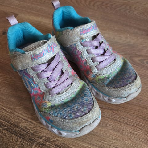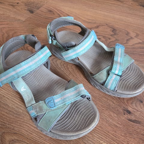 Selger et par brukte skooty sandaler I str 32. Disse er brukt en sesong men de er mye brukt. Endel slitasje under sålen, eller er de hele. Gode strammemuligheter bak og rundt ankel. Blinkelyset fungerer ikke lengre. Gis derfor bort pga overstående opplysninger.