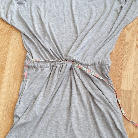 Saint Tropez sommerkjole for dame i størrelse XL. Kjolen er hvit i bomull (60% bomull) med strukturert stoff og små grønne hjerter. Den har omslagseffekt i overdelen, V-utringning og korte ermer. Lengden går omtrent til kneet, avhengig av høyde. Passer til bruk på varme dager og til hverdagsbruk eller enkle anledninger.