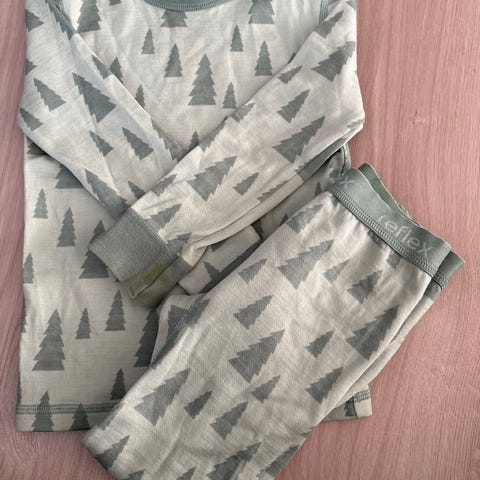 Bodyen er størrelse 98. Buksen er størrelse 98/104. NB merker på armene