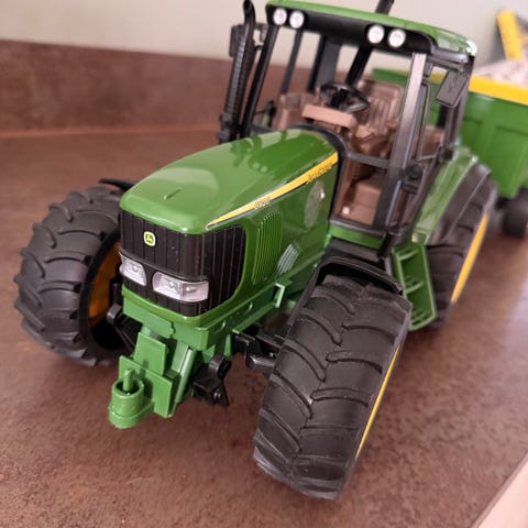 Egnet som lekekjøretøy for barn som liker anleggsmaskiner og landbruksmaskiner. Passer til innendørs og utendørs lek på jevnt underlag.