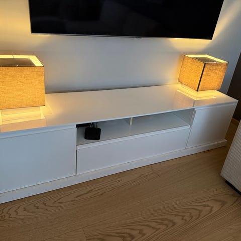 Tvbenk på hjul gis bort. Må hentes innen 7. februar.