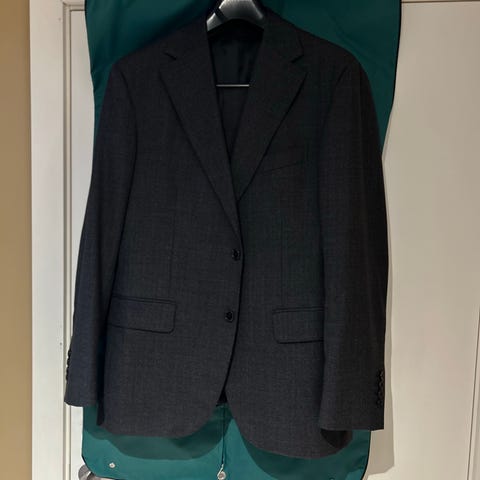 Flanelljakke i unik, mørk grønn-blå farge fra Oscar Jacobson. Svært høy kvalitet i både veving og detaljer, med et tidløst og eksklusivt preg. Perlemorsknapper foran og langs mansjetter, dobbel splitt bak og brede slag. Modellen har en smal passform. Lite brukt og fremstår som helt ny. Bør sees!
