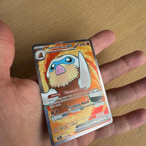 Pokémon Mamoswine EX samlekort. Kortet viser Pokémonen Mamoswine i EX-versjon med illustrasjon på forsiden og standard Pokémon-bakside.