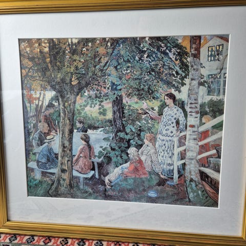 Nikolai Astrup maleri kunsttrykk Rammebilde landskapsmotiv med kvinne i hage