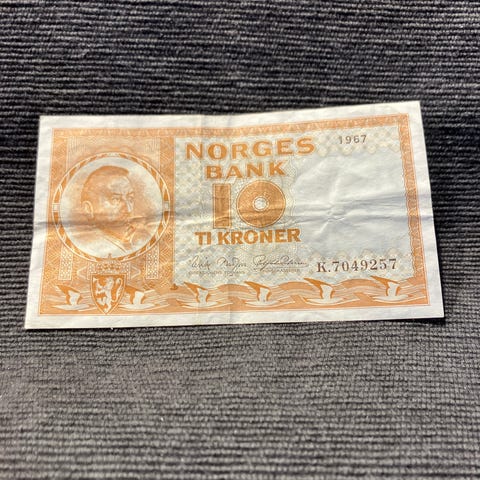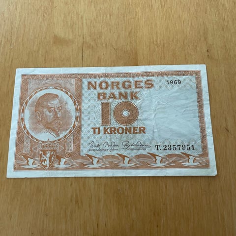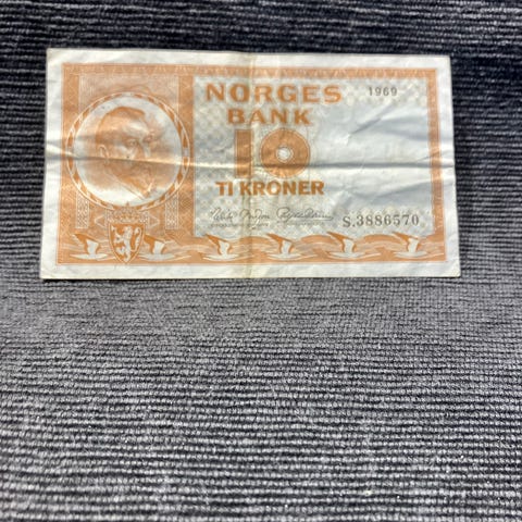 Norges Bank 10 kroner seddel fra 1972 L