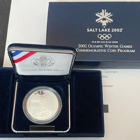 Norges Bank Norsk idrett 150 år sølvmynt 200 kr fra 2011. Minnemynt utgitt i forbindelse med at norsk idrett fylte 150 år i 2011. Mynten er preget i sølv i proof-kvalitet med glatt rand. Motiv med ulike idrettsutøvere på forsiden. Leveres i original etui med informasjonshefte fra Det Norske Myntverket.