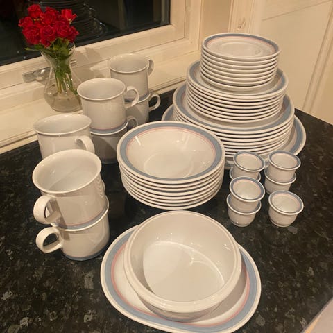Eldre middag service med bruksslitasje selges. Pris står under bilde.