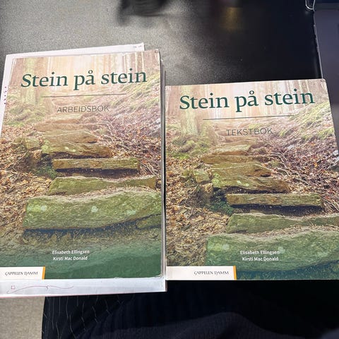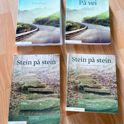 Stein på stein lærebok og arbeidsbok i norsk som andrespråk. Bøkene er trykt i heftet/pocket-format med fargeomslag. Egner seg til bruk i undervisning i norsk for voksne innvandrere eller andre som lærer norsk på mellomnivå. Settet består av én tekstbok og én arbeidsbok med oppgaver.