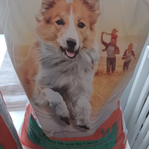 Hundefor med fisk. Monoprotein, altså en proteinkilde. Hunden min tålte begge dårlig. Brukt en uke så ca 1 kg for er tatt av sekken.