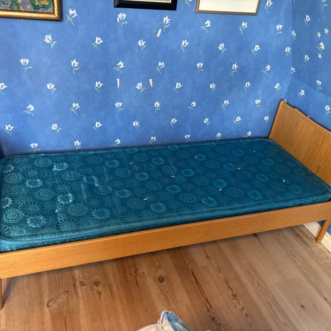Dobbelseng ca frå 1960. 2 nattbord på sidene. Trenger litt teakolje og gjerne litt puss.