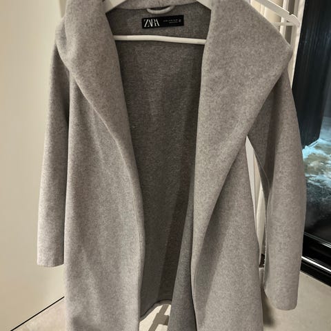 Gerry Weber innsvinget kåpe i polyamide for dame i størrelse 36. Kåpen er grå og har knepping foran med store knapper. Den har krage med drapert fasong og innsvinget passform som gir en lett utsvingt nederkant. Lengden går omtrent til kneet, og den har lange ermer. Innsiden er helfôret for økt komfort. Egner seg som yttertøy i overgangssesonger og milde vinterdager. Ny pris var 2799.-