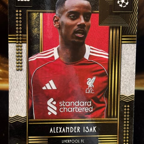 Nummerert fotballkort av Alexander Isak i Liverpool drakt selges for 150 kr.