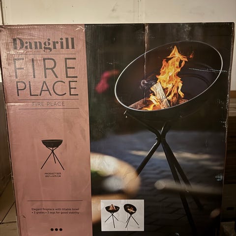 Dangrill Fire Place utepeiser og bålpanner i svart stål. Pakken inneholder ulike modeller, blant annet frittstående utepeis med stativ, utepeis med pipe, lav bålpanne og bålpanne med grillrist i stativ. Produktene er beregnet for bruk utendørs til vedfyring og enkel grilling. Egner seg som varmekilde og samlingspunkt på terrasse eller i hage. Alle modeller har åpne ildskåler og ben/stativ som løfter bålpannen fra underlaget.