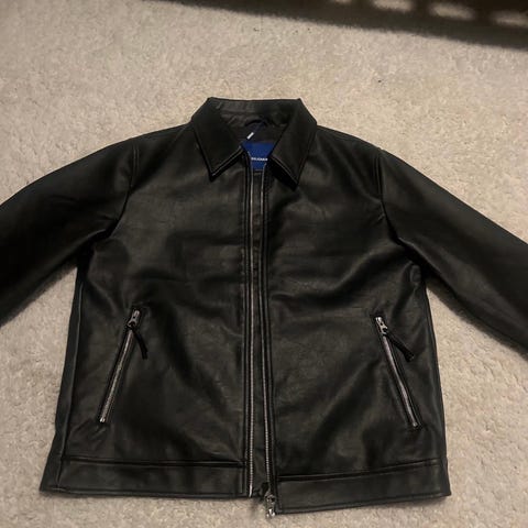 Scotch & Soda skinnjakke for herre i størrelse M. Jakken er grønn og laget i skinn/"genuin leather". Modellen har knappelukking i front og ribbestrikkede kanter ved hals og nederkant. Passer som ytterjakke i overgangssesonger og til hverdagsbruk.
