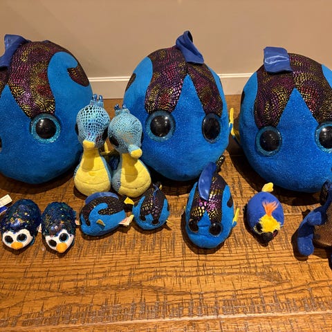 Ty kosedyr små plysjfigurer. Pakken inneholder tre myke kosedyr i plysj: én stående figur og to liggende figurer. Alle har store øyne og karakteristisk Ty-merkelapp. Egnet som leker for barn eller som samlefigurer og pynt på barnerom. Størrelsen er små til mellomstore kosedyr som er enkle for barn å holde og leke med.