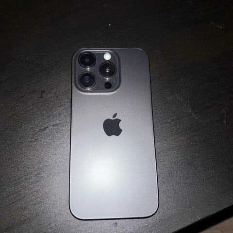 Apple iPhone 15 Pro mobiltelefon med 256 GB lagringskapasitet. Telefonen leveres med original eske og et deksel med magnetisk ladefunksjon (MagSafe). Dekselet er nesten helt nytt.