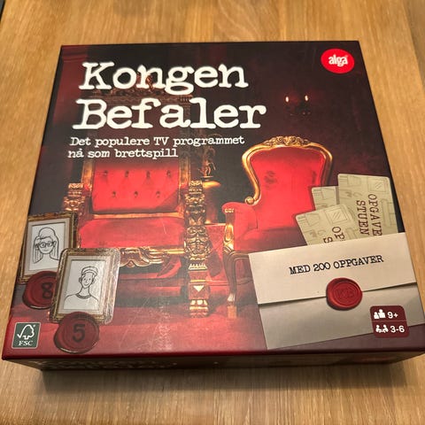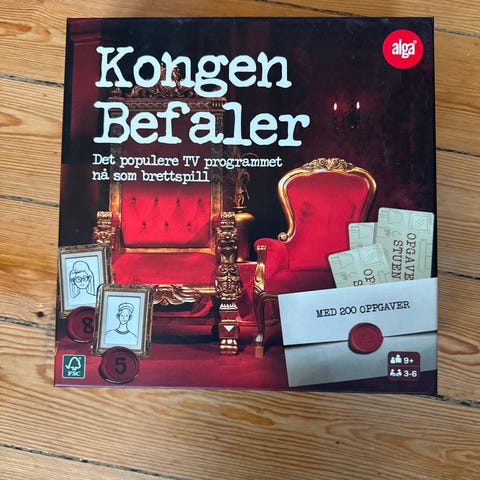 Kongen Befaler brettspill basert på TV-programmet, med oppgavekort og spillebrett.