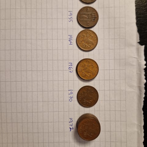 Norge 5 øre mynter 1937–1971samling