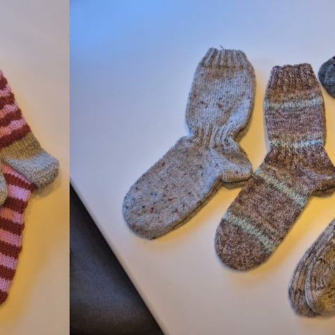 5 par hjemmestrikkede sokker/ lester selges ubrukt.