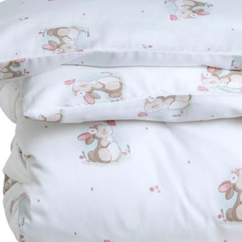 Sengesett i økologisk bomull med koselig motiv. Dynetrekk har lukking i bunn med skjult glidelås.