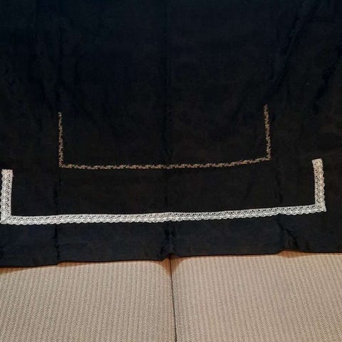 Nytt Skjeggedal forkle med strikket blonde. Langt så kan lett tilpasses. Selges for 8000kr.