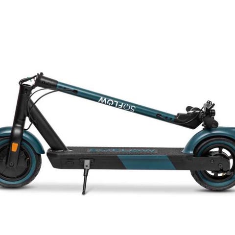 SoFlow elektrisk sparkesykkel i blå og svart farge. Sparkesykkelen har ståbrett med sklisikkert mønster og integrert batteri i rammen. Styret har digitalt display som viser hastighet og batterinivå. Det er integrert frontlys på styrestangen for bedre sikt. Lader følger med, og lading skjer via kontakt på ståbrettet. Blitt brukt veldig lite 1 år gammel.