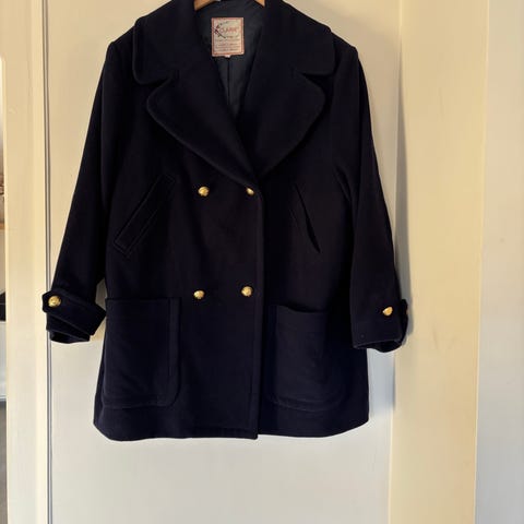 Varm og god jakke, med glidelås opp og ned - med knapper dom kan åpnes på siden