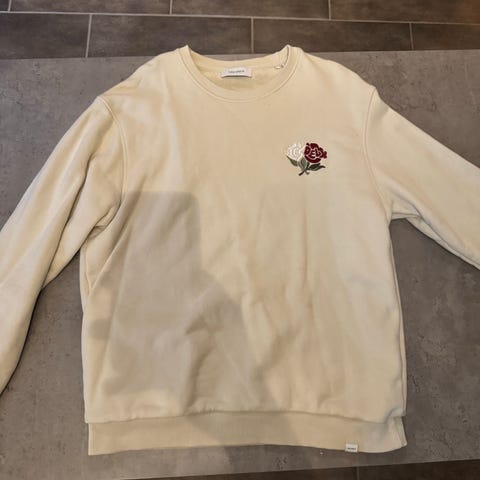 Les Deux genser for herre i størrelse L. Genseren er grå og laget av bomull. Klassisk rund hals med ribbekant og liten Les Deux-logo på brystet. Passer til hverdagsbruk og kan kombineres med både jeans og chinos.