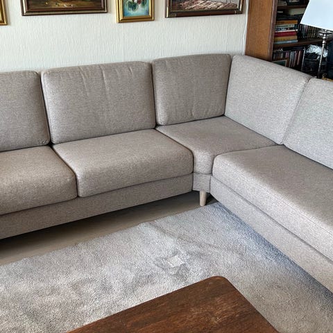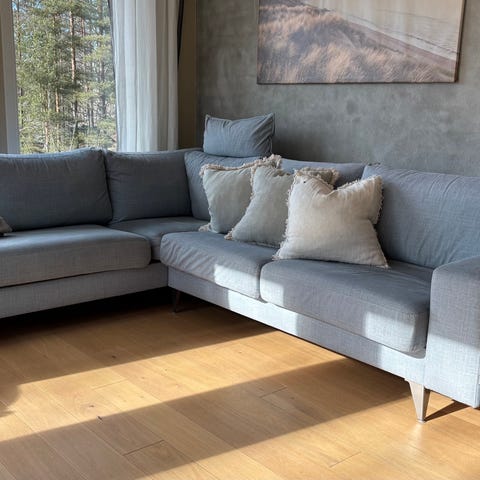 Stordal hjørnesofa kjøpt ny 2023, selges. Ullstoff, stoffgruppe 4, Loen