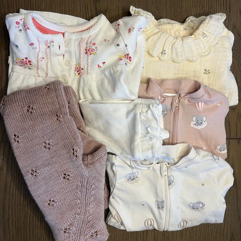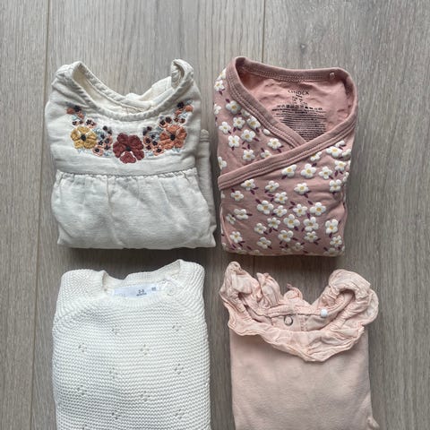 Økologis bomull i første kvalitet til baby jenter det er strikket med maskin og hånd brodert alle detaljer, forskjellige størrelser. Pris varierer per størrelser og per stk. se pris under hver bilde.